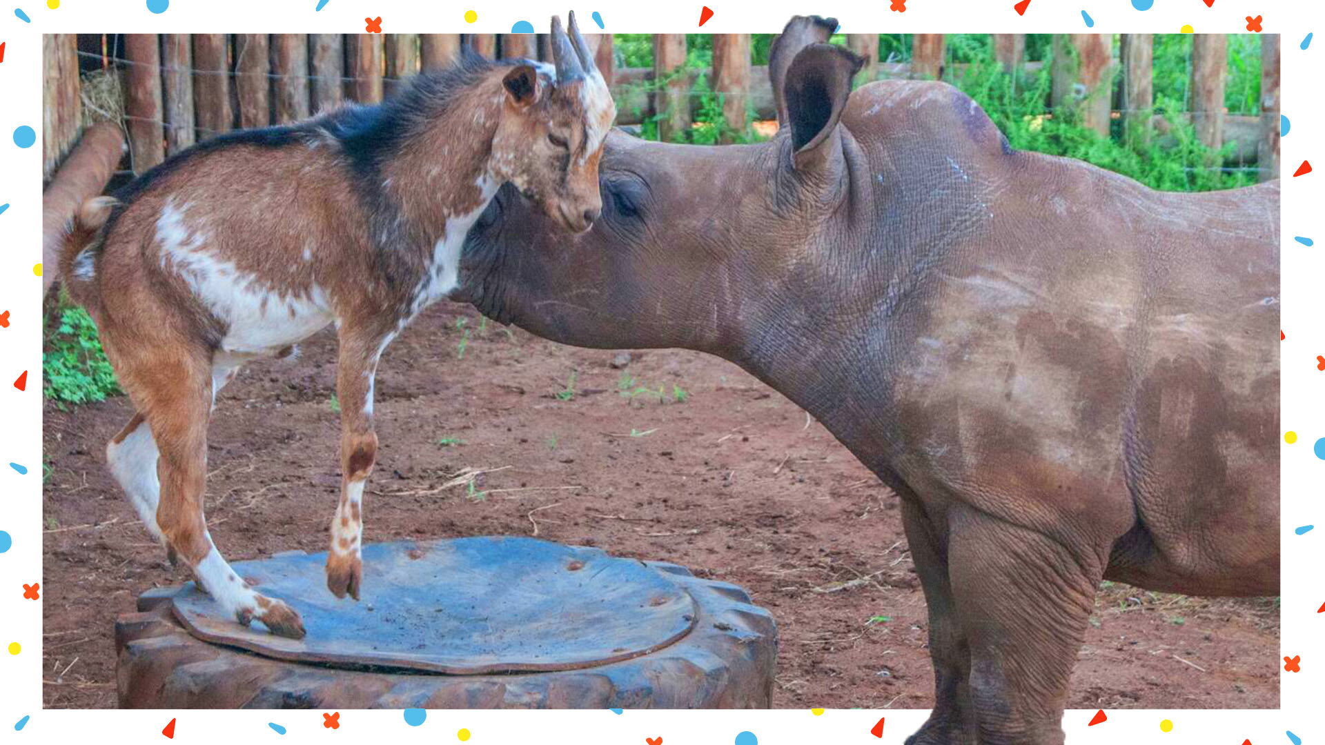 Imbuzi The Goat Helps Khula The Baby Rhino Be Brave