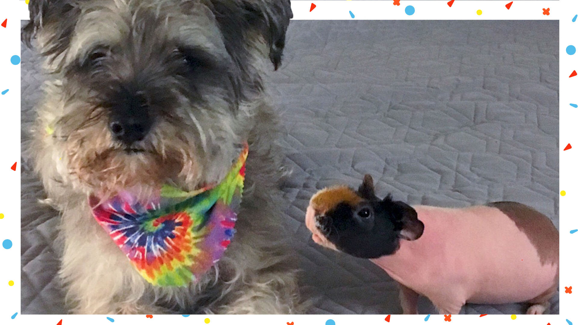 Wallace the guinea pig is so grumpy — is it because he’s naked? Maybe Charlotte the dog can help cheer him up!