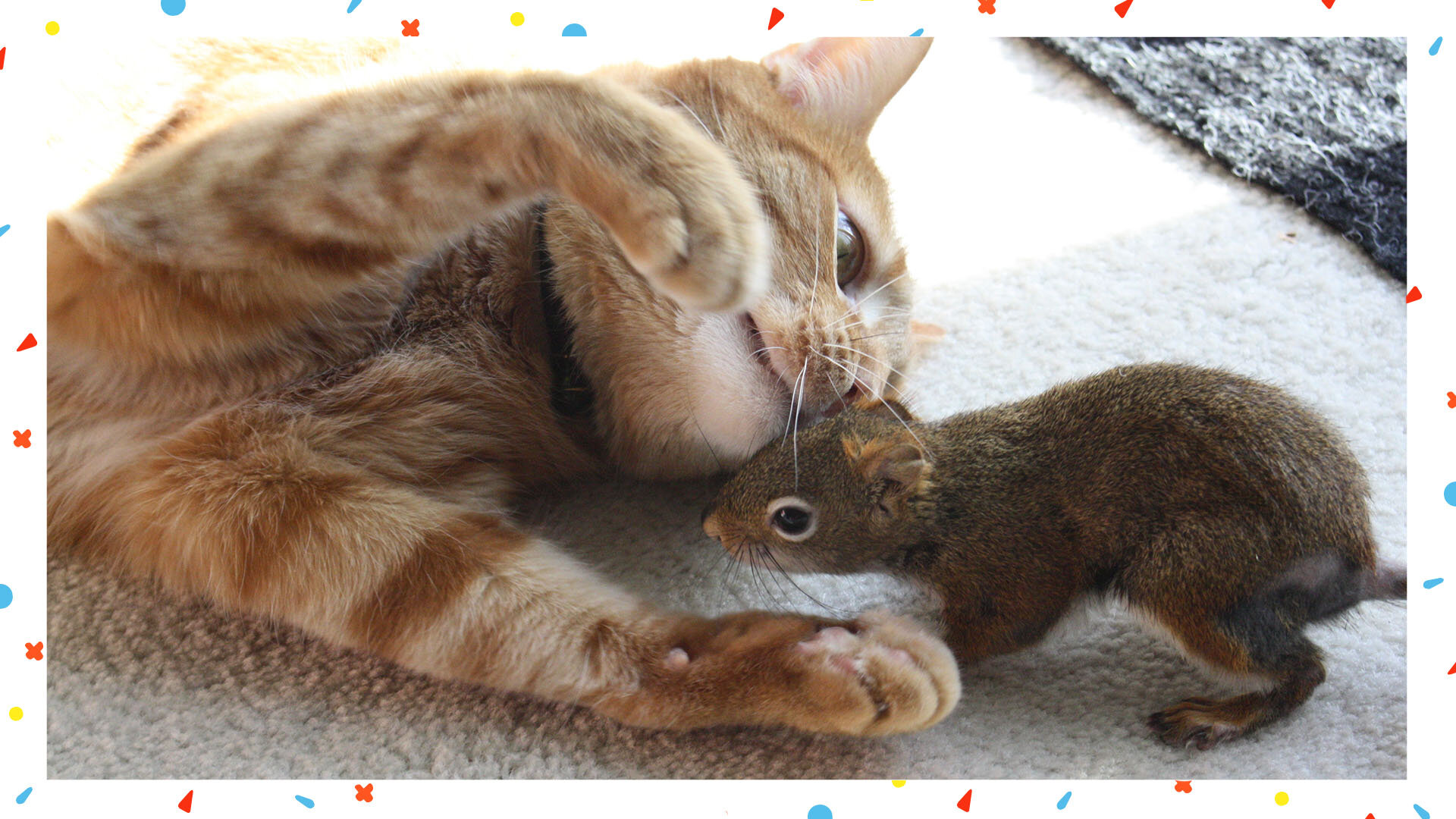 Tommy The Little Squirrel Follows Jack The Cat Everywhere He Goes