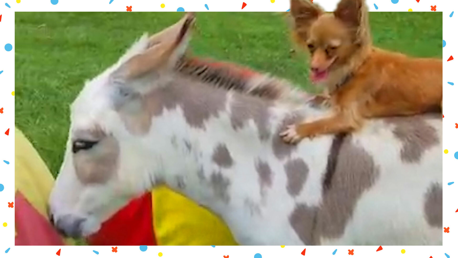 Yoda is a little dog who has his very own donkey! Her name is Lily, and she loves Yoda so much that she even lets him ride on her back.