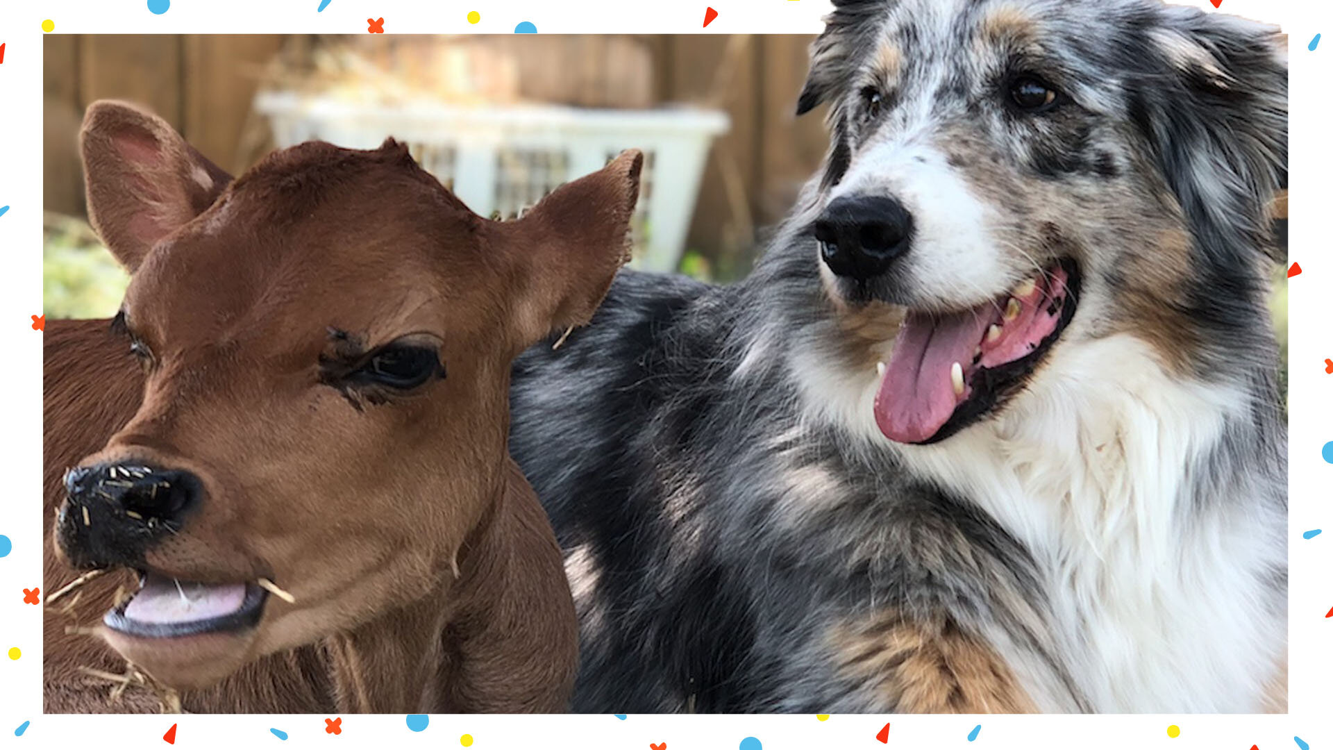 Lincoln the dog loves all the animals on his farm, but his favorite is definitely Calvin the little cow.