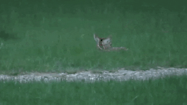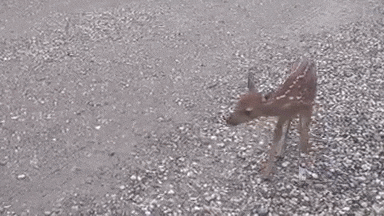Eventually, after struggling to keep up, the fawn was left behind.