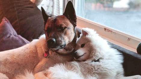 Minnow the Dog Shares His Burrito With Blossom The Turkey